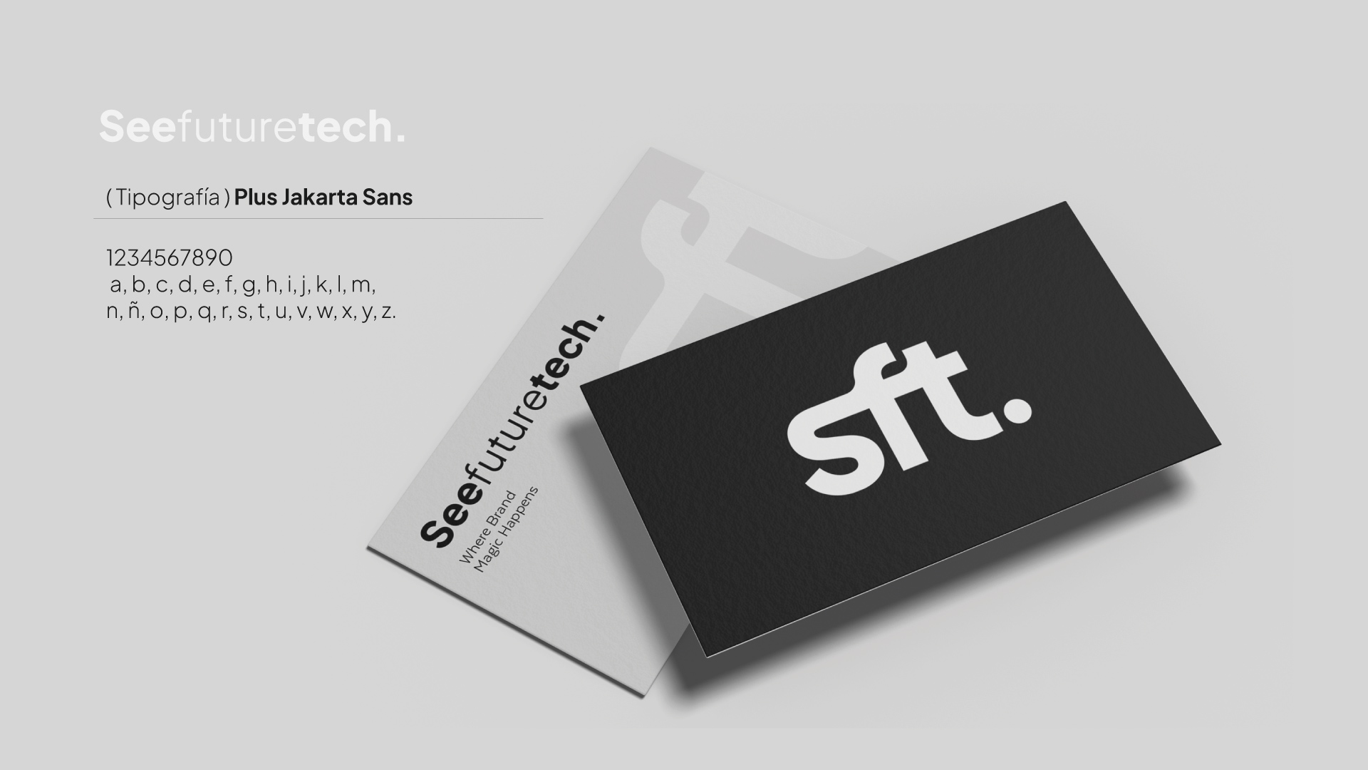 Logotipo minimalista y sólido inspirado en el concepto “See Future”. Desarrollado en versiones positiva y negativa, con pruebas de reducción y escalabilidad para su uso en formatos digitales y físicos.
